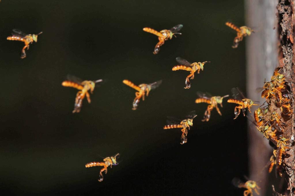 Entre 2015 e 2017, as buscas por ninhos de abelhas sem ferrão em árvores e a instalação de ninhos-armadilha foram conduzidas no Corredor Ecológico Cantareira-Mantiqueira, pertencente à porção sudeste da Mata Atlântica. Esse é um bioma ameaçado pela contínua fragmentação e perda de áreas, com a maioria dos remanescentes menores que 50 hectares. Em dez áreas, foram amostrados 143 ninhos pertencentes a 18 espécies. Os resultados das análises estatísticas mostraram que a diversidade de espécies de abelhas sem ferrão apresentou uma relação positiva com a cobertura florestal e com a heterogeneidade de uso de solo na escala mais ampla da paisagem (5km). Isso significa que essas abelhas “responderam” aos efeitos muito mais amplos do ambiente em que se encontram (5km), do que apenas ao contexto local onde estão localizados seus ninhos e suas fontes de alimento. Também, áreas com mais de 40% de florestas de Mata Atlântica favorecem a diversidade de espécies de abelhas sem ferrão.