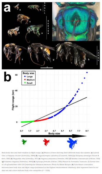 Em artigo publicado no periódico Scientific Data, pesquisadores identificaram um conjunto de dados com características de 328 espécies de abelhas brasileiras registradas para os domínios da Amazônia em Carajás (PA) e da Mata Atlântica em Nova Lima (MG). As características das espécies estudadas contemplaram tamanho corporal, alcance de vôo, distribuição geográfica na região Neotropical, cultivos agrícolas que polinizam, socialidade e local usado para a construção dos ninhos.